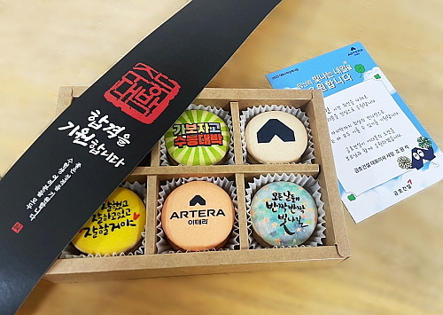 함께 전달된 응원 선물상자에는 금호건설이 특별 제작한 ‘수능 대박 기원 아테라 마카롱 세트’가 담겼다. 마카롱에는 “가보자고 수능 대박”, “잘했고 잘하고 있고 잘 할 거야”, “모든 날들이 반짝반짝 빛나길” 등 격려 문구와 함께 금호건설의 신규 주거 브랜드인 아테라(ARTERA) 로고가 알록달록 새겨져 수험생 자녀들로부터 큰 호응을 얻은 것으로 전해진다.