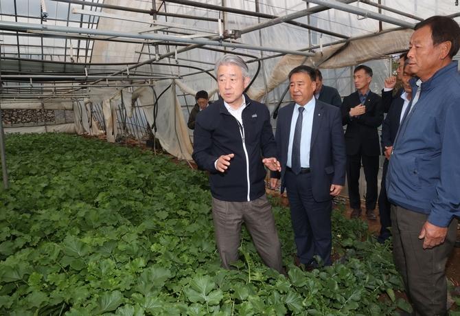 10일 농협중앙회에 따르면 강 회장은 지난 8일 전남 여수시의 한 농가를 찾아 무 생육 상황을 점검했다.