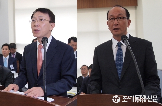 (조세금융신문=김태효 기자) 11일 오전 서울 종로구 수송동 서울청사에서 국회 기획재정위원회의 서울·중부지방국세청에 대한 국정감사가 진행 중인 가운데, 김연근 서울지방국세청장(좌)과 김재웅 중부지방국세청장(우)이 업무보고를 하고 있다.