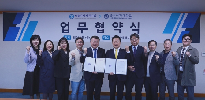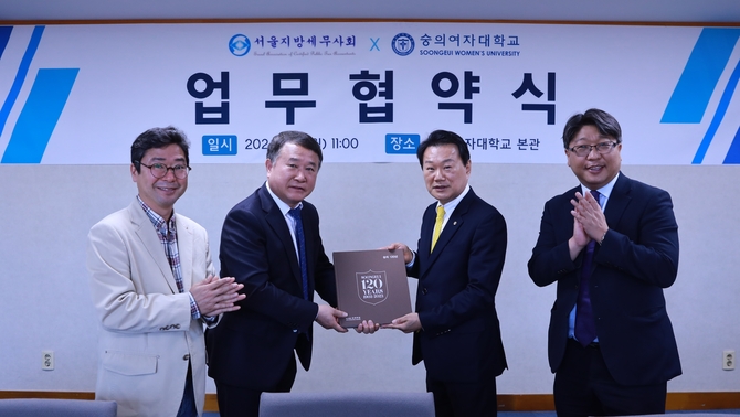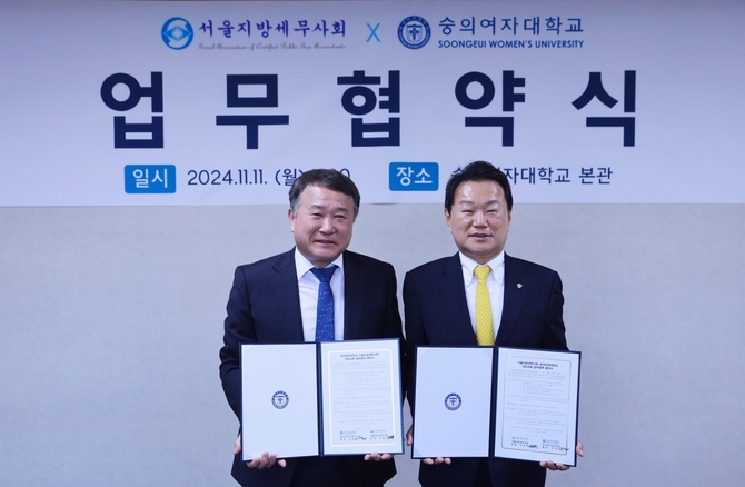 (조세금융신문=김영기 기자) 서울지방세무사회(회장 이종탁)는 11일 숭의여자대학교 본관 회의실에서 숭의여자대학교(총장 박경호)와 여성 인재 양성을 위한 업무협약(산학협약)을 체결했다고 밝혔다.