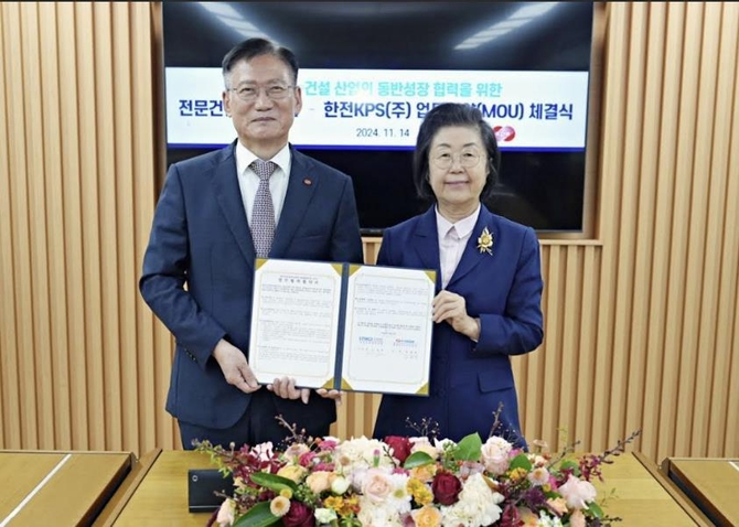 이날 협약식에는 이은재 전문건설공제조합 이사장, 김홍연 한전KPS 대표 등이 참석했다.