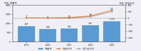 모헨즈의 2023년 매출액은 전년대비 23.6% 늘어난 1114억원이고, 영업이익 또한 전년대비 241.0% 늘어난 121억원을 기록했다. 이 회사의 매출액 증감률과 영업이익 증감률은 각각 코스닥 상위 18%, 상위 5%에 해당된다.