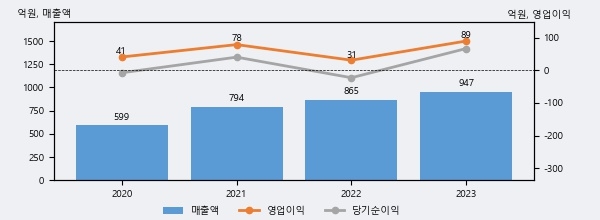 아이비김영의 2023년 매출액은 947억으로 전년대비 9.5% 상승했고, 영업이익 또한 89억으로 전년대비 190.3% 상승했다. 이 회사의 매출액 증감률과 영업이익 증감률은 각각 코스닥 상위 33%, 상위 7%에 해당된다.