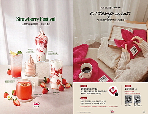 (조세금융신문=민경종 전문기자) 매일유업 관계사 엠즈씨드(대표 권익범)가 운영하는 스페셜티 커피 전문 브랜드 폴 바셋이 겨울 제철딸기를 활용한 신메뉴 5종과 연말 감사 이벤트를 제안했다.