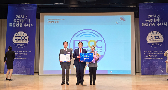‘공공데이터 품질인증’은 행정안전부가 행정·공공기관을 대상으로 공공데이터 품질 관리체계와 보유 데이터베이스(DB) 전반의 품질을 심사하여 우수기관에 인증을 부여하는 제도다.
