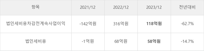 TP의 지난 3년 동안 법인세 납부액 추이를 보면 2022년에는 증가했으나, 작년에는 58억원으로 감소했다.