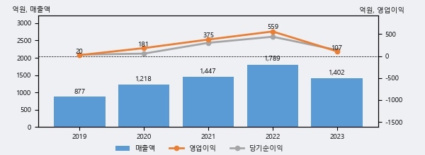 ISC은 2023년 매출액 1402억원과 영업이익 107억원을 기록했다. 전년대비 매출은 -21.6%, 영업이익은 -80.8% 각각 하락했다. 이 회사의 매출액 증감률과 영업이익 증감률은 각각 코스닥 하위 19%, 하위 24%에 해당된다.