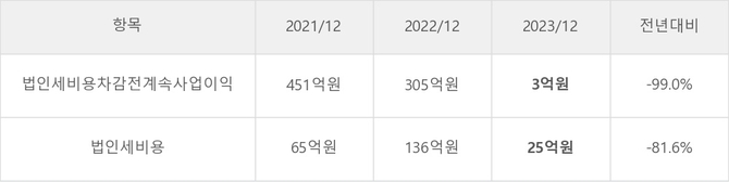 서진시스템의 지난 3년 동안 법인세 납부액 추이를 보면 2022년에는 증가했으나, 작년에는 25억원으로 크게 감소했다.