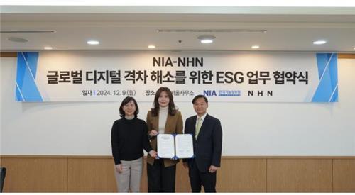 (조세금융신문=최주현 기자) 한국지능정보사회진흥원(NIA)은 9일 NHN[181710]과 '글로벌 디지털 격차 해소를 위한 ESG 업무 협약'을 맺어 NHN이 기증하는 PC·태블릿 등 기기를 개발 도상국에 전달한다고 밝혔다.