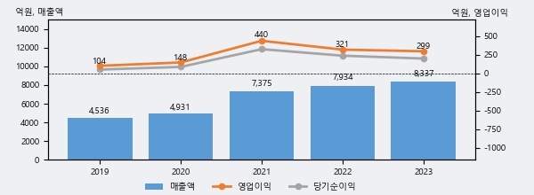 최근 3년간의 실적을 살펴보면 안정적 성장세를 보이고 있다. 최근 3년간 매출로 볼 때 매년 꾸준히 증가하고 있다. 다만 최근에 그 증가폭이 다소 감소하고 있다.