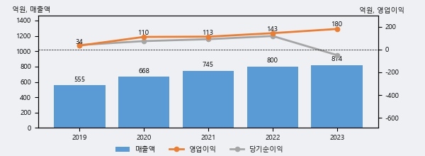 고려제약의 2023년 매출액은 814억으로 전년대비 1.7% 상승했고, 영업이익 또한 180억으로 전년대비 25.8% 상승했다. 이 회사의 매출액 증감률과 영업이익 증감률은 각각 코스닥 상위 48%, 상위 29%에 해당된다.