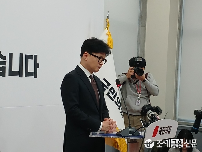 한 대표는 이날 기자회견에서 “국민의힘 당 대표직을 내려놓는다. 최고위원들의 사퇴로 최고위가 붕괴돼 더 이상 당대표로서의 정상적인 임무 수행이 불가능해졌다”며 “이번 비상계엄 사태로 고통받으신 모든 국민들께 진심으로 죄송하다”고 했다.