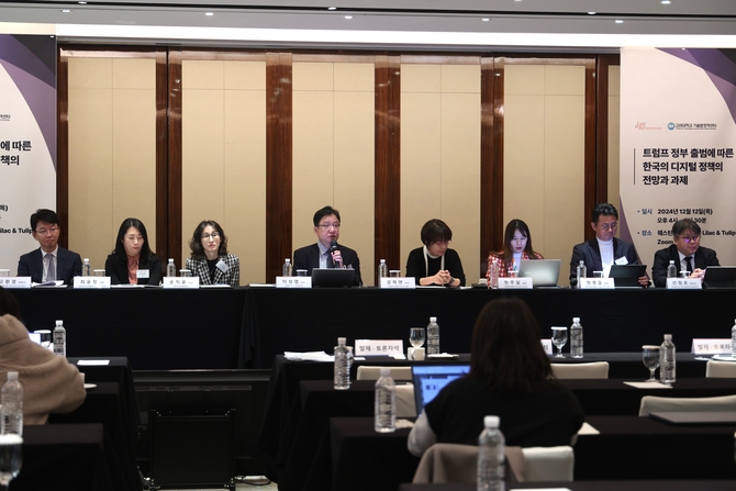 이날 세미나에선 미국 도널드 트럼프 2기 행정부가 취할 것으로 예상되는 보호주의, 자국 중심주의 등 정책 기조가 한국 디지털 정책에 미칠 영향, 시사점 및 과제 등이 논의됐다.