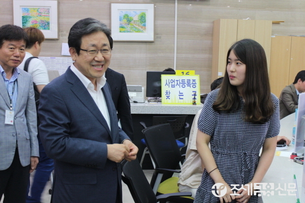 김 차장은 또 강남구에서 식당 개업 예정인 박모씨로부터 사업개시일 전에 사업자등록이 필요해 찾아왔는데, 즉시 발급이 되지 않는 점이 불편하다는 말에 “식품영업 신고와 같이 신고‧등록‧허가 등이 필요한 사업의 경우에는 해당 신고(등록, 허가)증 등이 없으면 사업자등록증을 민원실에서 즉시 발급받기 어렵지만 현지확인을 거쳐 정당한 경우에는 사업자등록증을 교부받을 수 있다”는 점을 민원실 직원과 함께 친절히 설명했다.