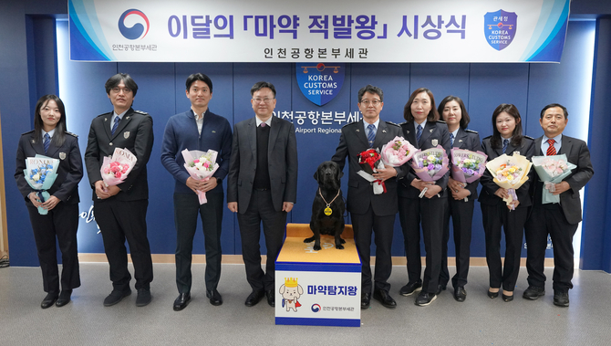 관세청 인천공항본부세관은 17일 인천국제공항 제1여객터미널 대회의실에서 2024년도 하반기(6월∼11월) 실적이 우수한 마약탐지견을 선정·시상했다고 밝혔다.