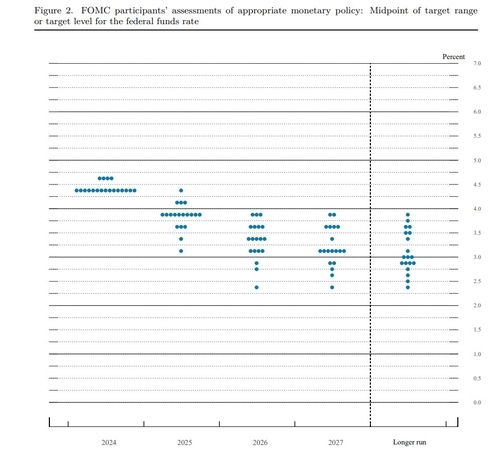 연준은 2026년 말의 기준금리는 3.4%(9월 2.9%)로, 2027년 말은 3.1%(9월 2.9%)로 예상하며 9월보다 각각 상향했다.