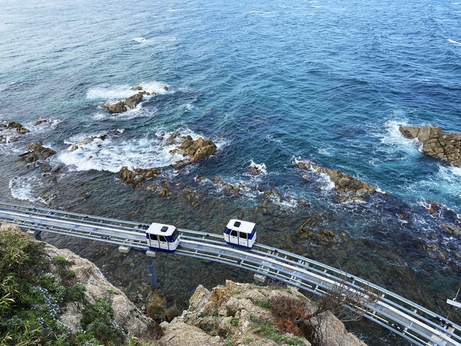 동해를 따라 해안 절벽 위로 운행되는 모노레일이다. 약 2km 구간에서 탁 트인 동해와 죽변항의 풍경을 감상할 수 있어 가족, 커플 여행객들에게 인기다. 근처에는 등대와 드라마 촬영지, 맛집이 있어 다양한 즐거움을 제공한다.