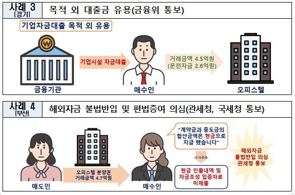 국토부는 적발된 위법 의심거래에 대해 사안에 따라 법무부, 금융위원회, 국세청, 관세청, 관할 지자체 등에 통보해 세금 추징 등 후속조치가 이뤄지도록 할 계획이다.