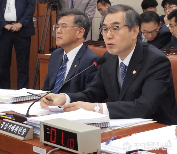 (조세금융신문=김태효 기자) 17일 여의도 국회에서 열린 국회 정무위원회의 공정거래위원회에 대한 국정감사에서 정재찬 공정거래위원장이 의원들의 질의에 답변하고 있다.
