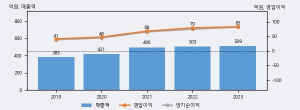 케이엘넷은 2023년 매출액 509억원과 영업이익 83억원을 기록했다. 전년대비 매출은 1.3%, 영업이익은 4.8% 각각 상승했다. 이 회사의 매출액 증감률과 영업이익 증감률은 각각 코스닥 상위 49%, 상위 38%에 해당된다.