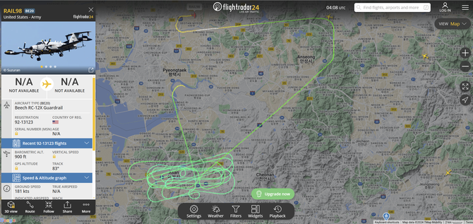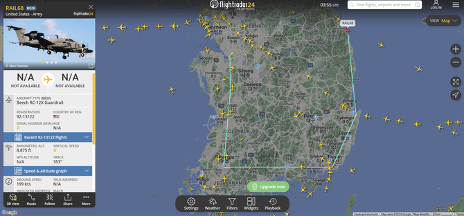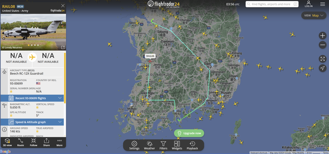 (조세금융신문=고승주 기자) 미 육군 소속 핵심 정찰 자산이 26일 오전 내내 한국 내 주요 군 시설 등을 정찰하는 것으로 나타났다. 출처는 ‘플라이트레이더24’다.