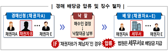 체납자가 얻는 수익은 원칙적으로는 국고 귀속돼야 하나, 체납자의 부동산 경매 배당금은 국세청이 사전에 인지해 압류하지 않으면, 체납자가 몰래 챙길 수 있게 된다.