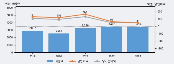 포스코엠텍은 2023년 매출액 3414억원과 영업이익 45억원을 기록했다. 전년대비 매출은 -0.2%, 영업이익은 -29.4% 각각 하락했다. 이 회사의 매출액 증감률과 영업이익 증감률은 각각 코스닥 하위 50%, 하위 43%에 해당된다.