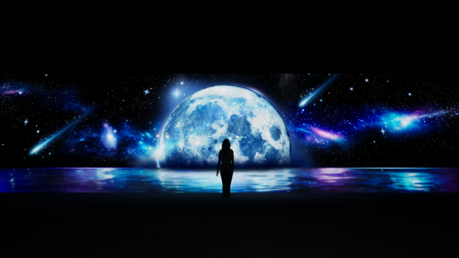 한유아의 생각과 관람객의 고민에 집중할 수 있도록 양면 총 30m 길이의 대형 미디어 월, 홀로그램 아트 등 시각과 감성을 결합한 참여형 미디어 아트로 공간을 구성했다.