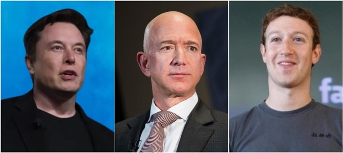 블룸버그 억만장자 지수에 따르면 전날 기준으로 머스크(1위, 4천320억달러)와 베이조스(2위, 2천380억달러), 저커버그(3위, 2천150억달러)의 순자산가치 합계는 8천850억달러(약 1천292조5천억원)에 달한다.