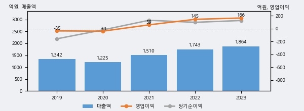최근 3년간의 실적을 살펴보면 안정적 성장세를 보이고 있다. 최근 3년간 매출로 볼 때 매년 증가하고 있다. 다만 최근에 그 증가폭이 다소 감소하고 있다.