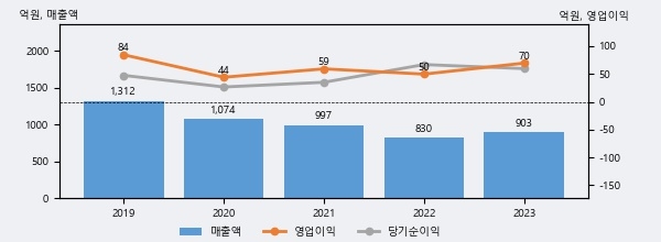 영보화학은 2023년 매출액 903억원과 영업이익 70억원을 기록했다. 전년대비 매출은 8.8%, 영업이익은 39.8% 각각 상승했다. 이 회사의 매출액 증감률과 영업이익 증감률은 각각 코스피 상위 28%, 상위 30%에 해당된다.