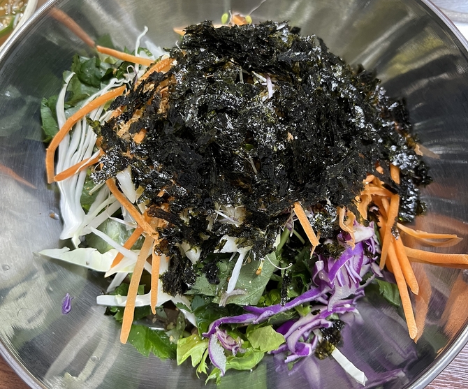 메밀묵밥과 채묵비빔밥, 감자전을 주문하자 잠시 후 정갈한 시골 밥상이 한상 차려졌다. 토마토 장아찌 등 다른 곳에서는 쉽게 볼 수 없는 기본 찬이 입맛을 돋운다. 따뜻한 묵밥 국물이 얼어 있던 속을 녹여주고, 고소한 감자전과 함께 먹다 보니 어느새 빈 그릇이 아쉬워졌다.
