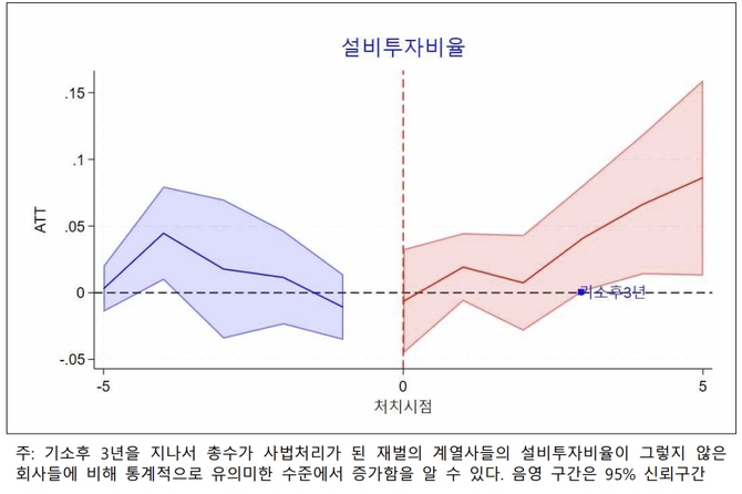 오히려 총수의 범죄 처벌 후 설비투자율이 4~7% 증가했다.
