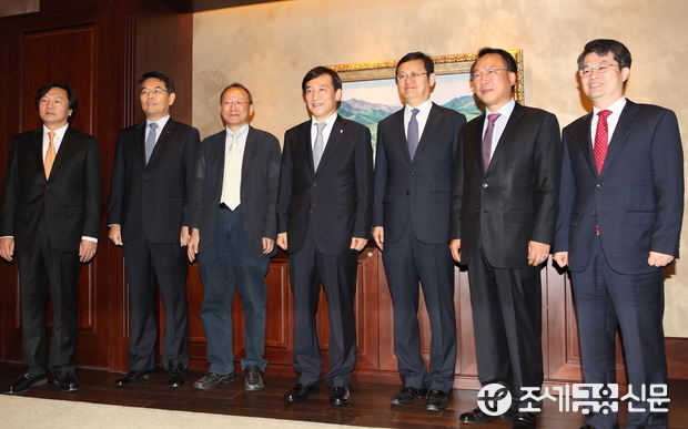 (조세금융신문=전한성 기자) '경제동향간담회'가 23일 오전 서울 중구 한국은행 본관에서 열린 가운데 이주열(왼쪽에서 네번째) 한국은행 총재가 참석자와 기념촬영을 하고 있다.