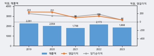 아바코는 2023년 매출액 1868억원과 영업이익 44억원을 기록했다. 전년대비 매출은 -14.0%, 영업이익은 -67.5% 각각 하락했다. 이 회사의 매출액 증감률과 영업이익 증감률은 각각 코스닥 하위 28%, 하위 27%에 해당된다.