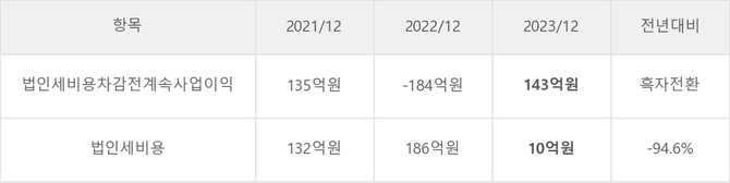 풀무원의 지난 3년 동안 법인세 납부액 추이를 보면 2022년에는 증가했으나, 작년에는 10억원으로 크게 감소했다.