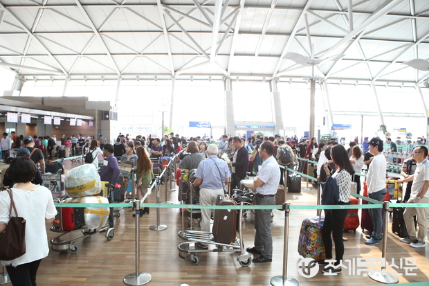 (조세금융신문=전한성 기자) 민족 대명절인 추석 연휴를 하루 앞둔 25일 오전 인천 중구 운서동 인천국제공항에 연휴기간 동안 해외에서 휴가를 즐길 시민들이 출국수속을 밟기 위해 길게 줄 서 있다.