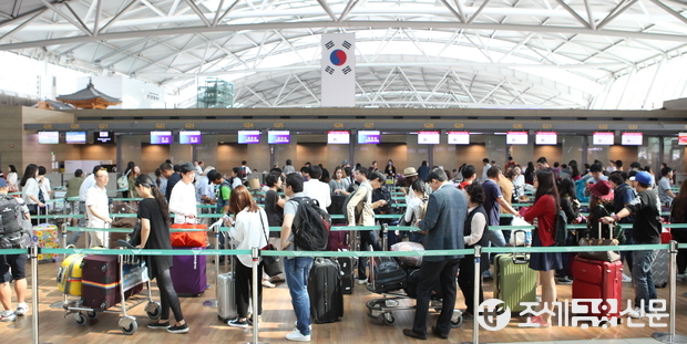 (조세금융신문=전한성 기자) 민족 대명절인 추석 연휴를 하루 앞둔 25일 오전 인천 중구 운서동 인천국제공항에 연휴기간 동안 해외에서 휴가를 즐길 시민들이 출국수속을 밟기위해 길게 줄 서 있다.