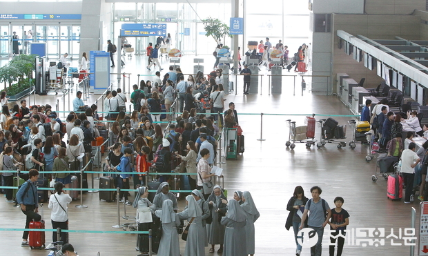 (조세금융신문=전한성 기자) 민족 대명절인 추석 연휴를 하루 앞둔 25일 오전 인천 중구 운서동 인천국제공항에 연휴기간 동안 해외에서 휴가를 즐길 시민들이 출국수속을 밟기위해 길게 줄 서 있다.