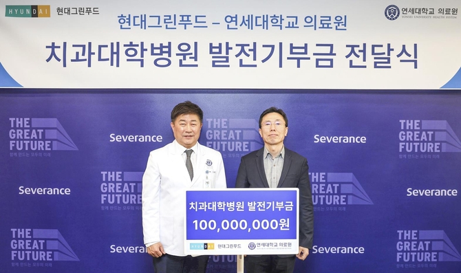 기부금은 연세대 치과대학병원 의료장비 확충과 스마트 진료 환경 구축에 활용된다. 기부금 전달과 별개로 현대그린푸드는 연세대 치과대학과 공동으로 임상 연구를 진행한다.