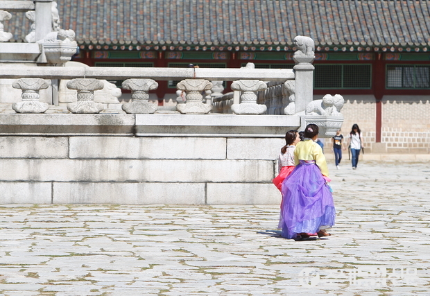 (조세금융신문=전한성 기자) 추석연휴 둘째날인 27일 오후 서울 종로구 경복궁에 한복을 곱게 차려 입은 학생들이 고궁을 산책하고 있다.