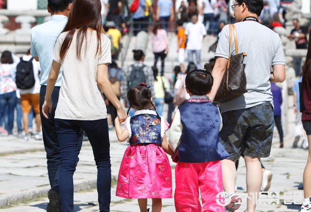 (조세금융신문=전한성 기자) 추석연휴 둘째날인 27일 오후 서울 종로구 경복궁에 부모님과 함께 찾아온 한 어린 남매가 한복을 곱게 차려입고 근정전으로 향하고 있다.