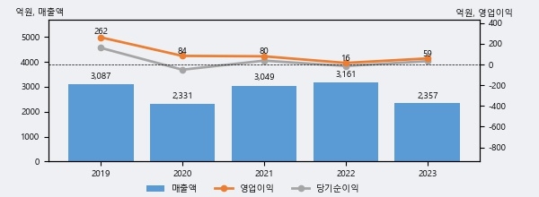 엔피디의 2023년 매출액은 전년대비 -25.5% 줄어든 2357억원이고, 영업이익은 전년대비 281.9% 늘어난 59억원을 기록했다. 이 회사의 매출액 증감률과 영업이익 증감률은 각각 코스닥 하위 15%, 상위 5%에 해당된다.