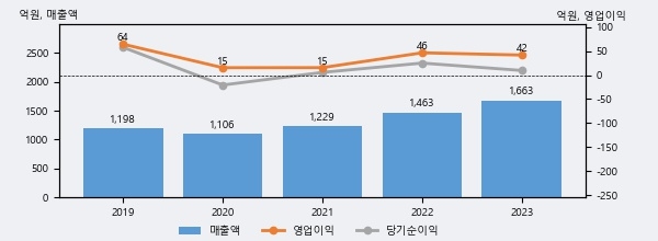 와이엠은 2023년 매출액 1663억원과 영업이익 42억원을 기록했다. 전년대비 매출은 13.6% 상승했고, 영업이익은 -10.2% 하락했다. 이 회사의 매출액 증감률과 영업이익 증감률은 각각 코스닥 상위 27%, 상위 46%에 해당된다.