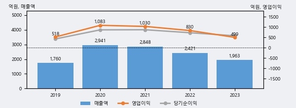 최근 3년간의 실적을 살펴보면, 매출액은 3년 연속 하락하고 있고 그 하락폭이 확대되고 있어서 투자자들은 주의깊게 살펴볼 필요가 있다.