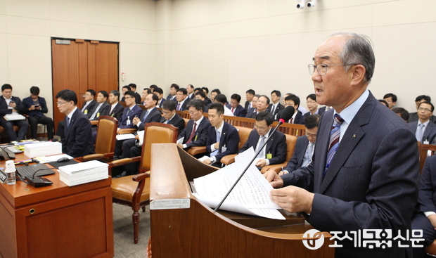 (조세금융신문=전한성 기자) 한국수출입은행·한국조폐공사에 대한 국회 기획재정위원회의 국정감사가 1일 서울 여의도 국회에서 열린 가운데 이덕훈 한국수출입은행장이 인사말을 하고 있다.