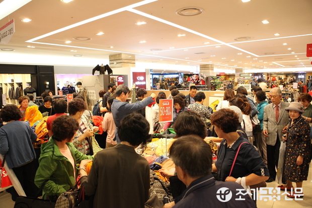 (조세금융신문=전한성 기자) '한국 블랙프라이데이' 행사가 시작된 1일 오후 서울 경인로 롯데백화점 아웃도어 매장에 많은 시민들이 몰려있다.