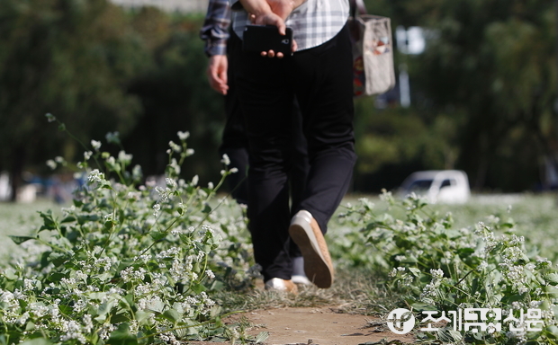 (조세금융신문=전한성 기자) '2015 한강 서래섬 메밀꽃 축제'를 하루 앞둔 2일 오후 시민들이 서래섬의 메밀꽃밭을 산책하고 있다.
