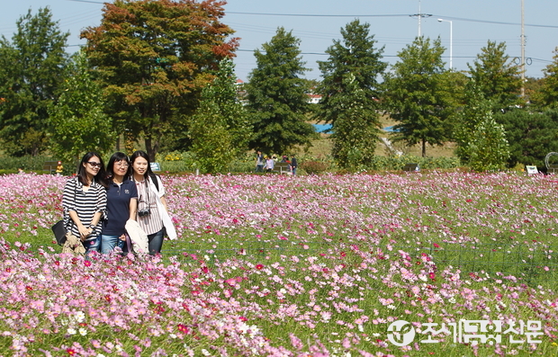 (조세금융신문=전한성 기자) '2015 구리 한강코스모스축제'를 일주일 앞둔 3일 오후 축제가 열릴 경기도 구리시 구리시민한강공원에 만개한 코스모스 사이로 중국인 관광객들이 기념촬영을 하고 있다.