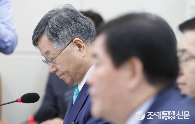 (조세금융신문=전한성 기자) 기획재정부·한국은행·한국수출입은행·한국조폐공사·한국투자공사·국제원산지정보원에 대한 국회 기획재정위원회의 종합감사가 5일 서울 여의도 국회에서 열린 가운데 안홍철 한국투자공사장이 본인의 거취관련 질의에 답변하는 최경환 경제부총리의 답변을 들으며 고개숙이고 있다.